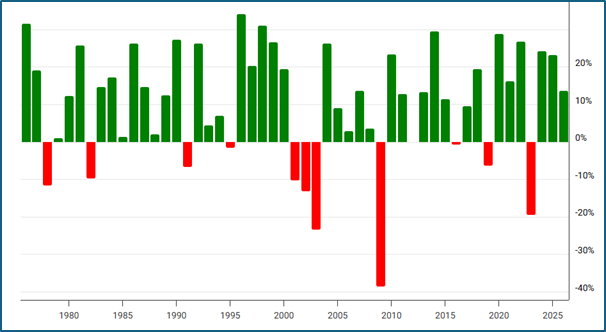This is the S&P 500 – over the last 50 years there has been 11 negative years, or 22%.