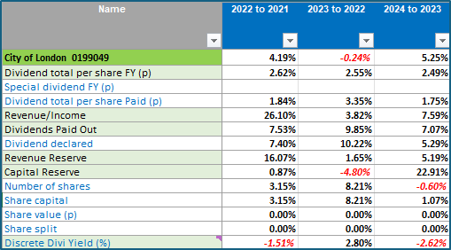 This is the percentage variance measured over the prior three years β our data actually goes all the way back for 38 years, to 1986. We are looking for trends, and we can find them quite clearly with investment trusts because the income and profits are identified in the revenue and capital reserves. If you look above you can see we also track the number of shares in issue, as they do indeed vary from year to year, and this can affect the dividend per share. Ever wondered why βbuy backsβ are so popular and what impact they have on internal financials? We do too. We do the research so that you can avoid the puddles and keep your investing feet dry.