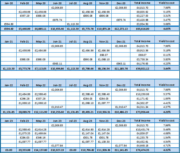 Our role is to do many things, however central to that is removing financial anxiety, and that is chiefly done by using predictable income that is visible and verifiable, and reconciling that month by month, year by year for clients. This is a redacted table of a client portfolio showing the monthly income (some columns hidden to be condensed). We believe all retirees with drawdown income should have similar projections and reconciliations.